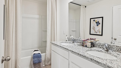 Welcome to the Salem floorplan, available at Prairie Pass in Apison. This is one of our most popular floor plans. On the main floor, you will find a formal dining room, laundry room, and powder room. The open-concept kitchen and living areas are perfect for entertainment. The kitchen boasts a breakfast nook, a pantry, and an island with countertop seating. From the breakfast nook, you can enjoy the view of the patio. The primary bedroom is also on the main floor, featuring a private bathroom and a walk-in closet. Upstairs, you will find three additional bedrooms, each with its walk-in closet, and a shared full bathroom. The spacious bonus room provides you with additional space for work or play. Please contact us to learn more about the Salem floor plan. It is a great option for anyone looking for a comfortable and spacious home. D.R. Horton is an Equal Housing Opportunity Builder. Home and community information, including pricing, included features, terms, availability and amenities, are subject to change and prior sale at any time without notice or obligation. Pictures, photographs, colors, features, and sizes are for illustration purposes only and will vary from the homes as built. Images may contain virtual staging.