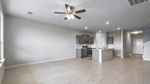 The Southhaven is a two-story approx 2,313 sq. ft. home offering 4 bedrooms, 3 bathrooms, and a spacious game room. This home features an elongated front porch that opens in a foyer. You'll find one secondary bedroom and bathroom right off the foyer, along with a tiled utility room. Continue into a grand, wide open kitchen overlooking the living area and featuring spacious Granite countertops, stainless steel appliances with electric cooking range, ceramic tile backsplash, a large kitchen island and a walk-in corner pantry. Entertain guests in the spacious dining room area flowing from the kitchen.