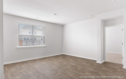 An additional bedroom, just off the kitchen, is the ideal space for guests or a home office. The back of the home features an owner's suite, including a full bathroom, and an oversized closet. This beauty also includes 9-foot first floor ceilings, 36'' gray kitchen cabinets, quartz countertops, gas range, exterior vented hood, and a dishwasher, (all stainless-steel appliances). This home includes Window Blinds, a Refrigerator, and Garage Door Opener! Additional features include high-efficiency 15 SEER 2 Carrier HVAC, and a tankless water heater for endless hot water! All new homes will include D.R. Horton's Home is Connected® package, an industry leading suite of smart home products that keeps homeowners connected with the people and place they value the most. This technology allows homeowners to monitor and control their home from the couch or across the globe. Products include touchscreen interface, video doorbell, front door light, z-wave t-stat, and keyless door lock. *Square footage dimensions are approximate. *The photos you see here are for illustration purposes only, interior and exterior features, options, colors and selections will differ. Please reach out to sales agent for options.