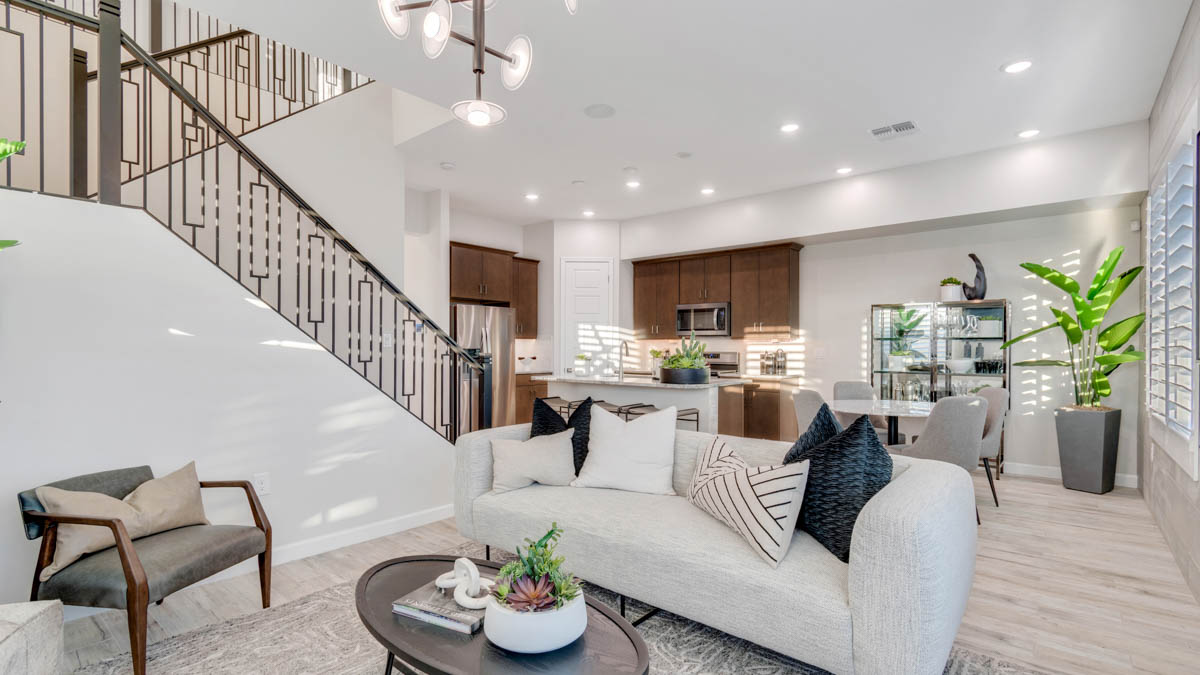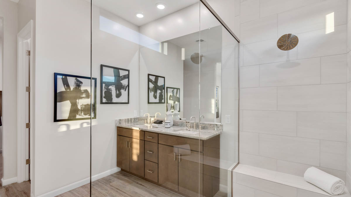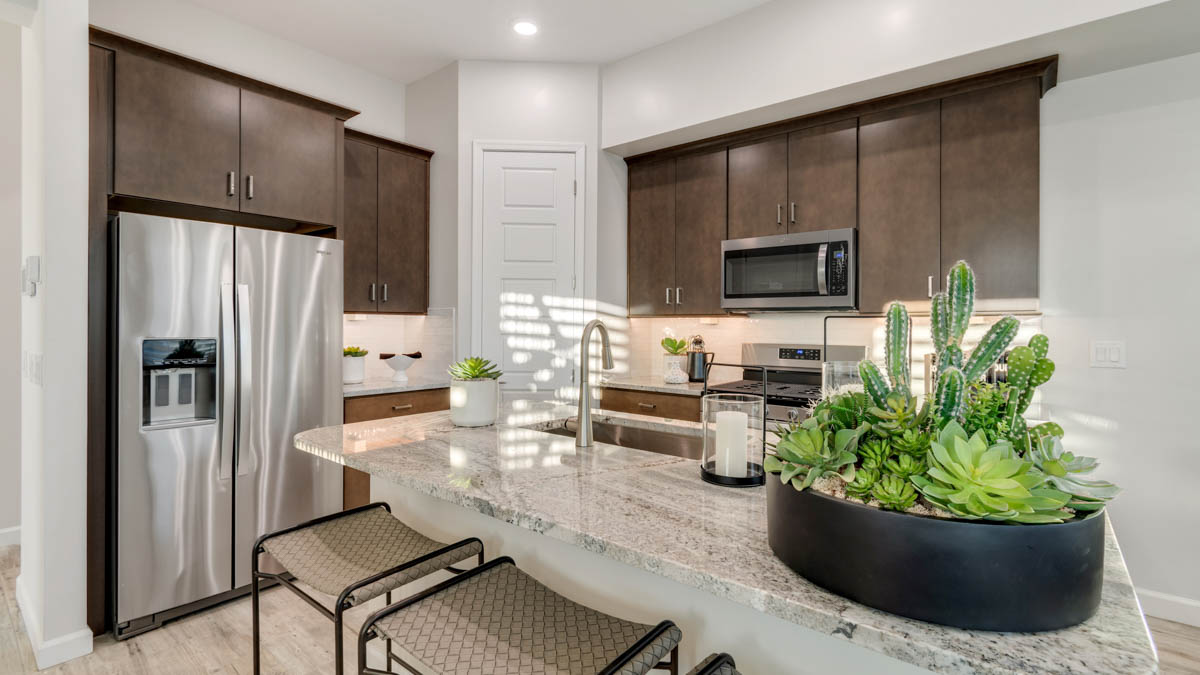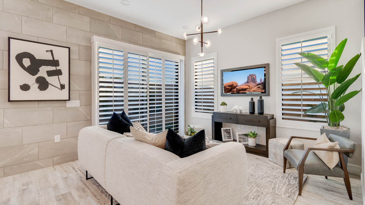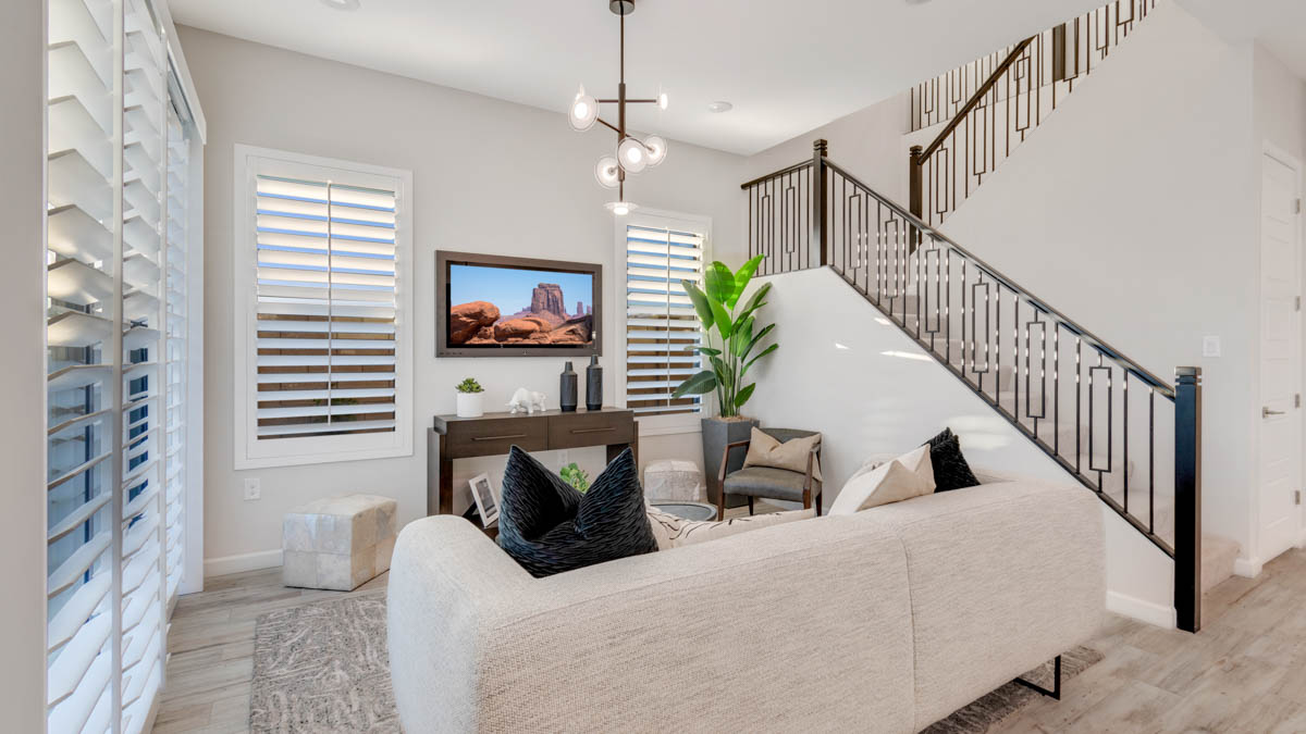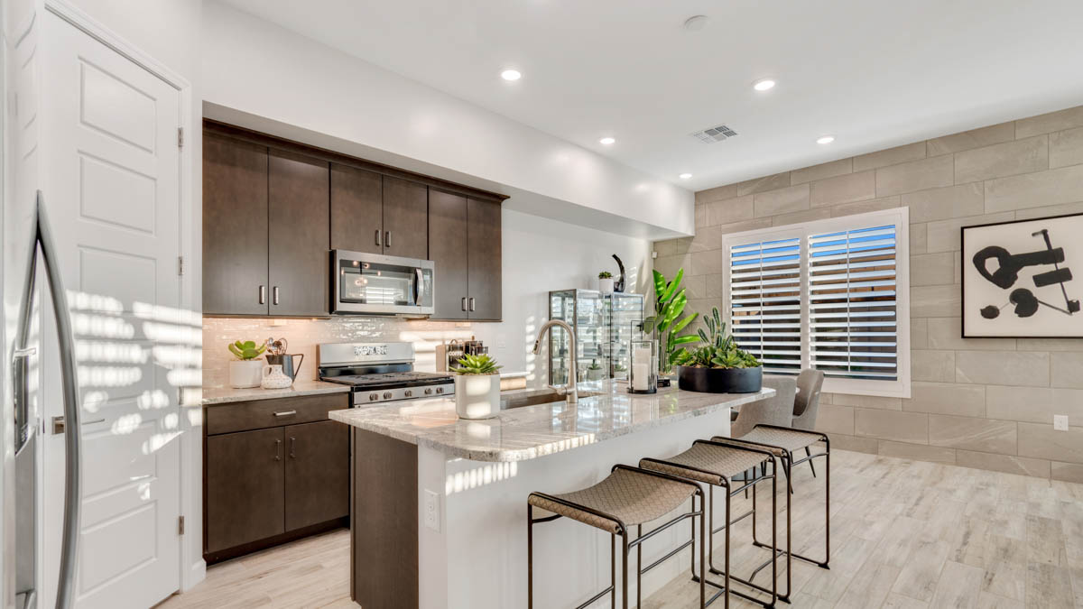 But what truly sets the Reno apart are its modern amenities. From Smart Home Technology to a gas stainless-steel range, every detail is carefully chosen to enhance your lifestyle and convenience. Granite countertops and 20x20 tile flooring add a touch of sophistication to the home's interior, while brushed nickel bath accessories provide a sleek finishing touch. Upgraded carpet with stain guard ensures durability and easy maintenance, while desert front yard landscaping completes the picture, welcoming you home to your own desert sanctuary. Images and 3D tours only represent the Reno plan and may vary from homes as built. Speak to your sales representative for more information.