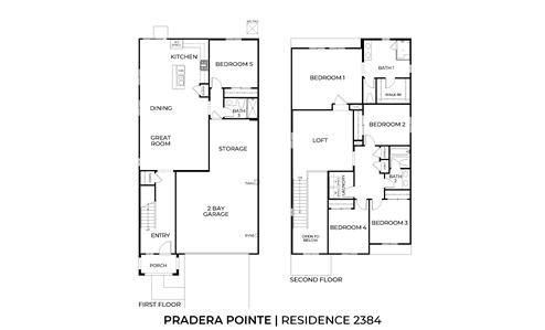 At Pradera Pointe you will find a variety of meticulously designed floorplans that have been created with you in mind. From cozy one-story residences to spacious two-story homes with up to 5 bedrooms + loft and 3 bathrooms. With five different floorplans to select from, ranging from 1,342 sq. ft. to 2,384 sq. ft., there is something for everyone.