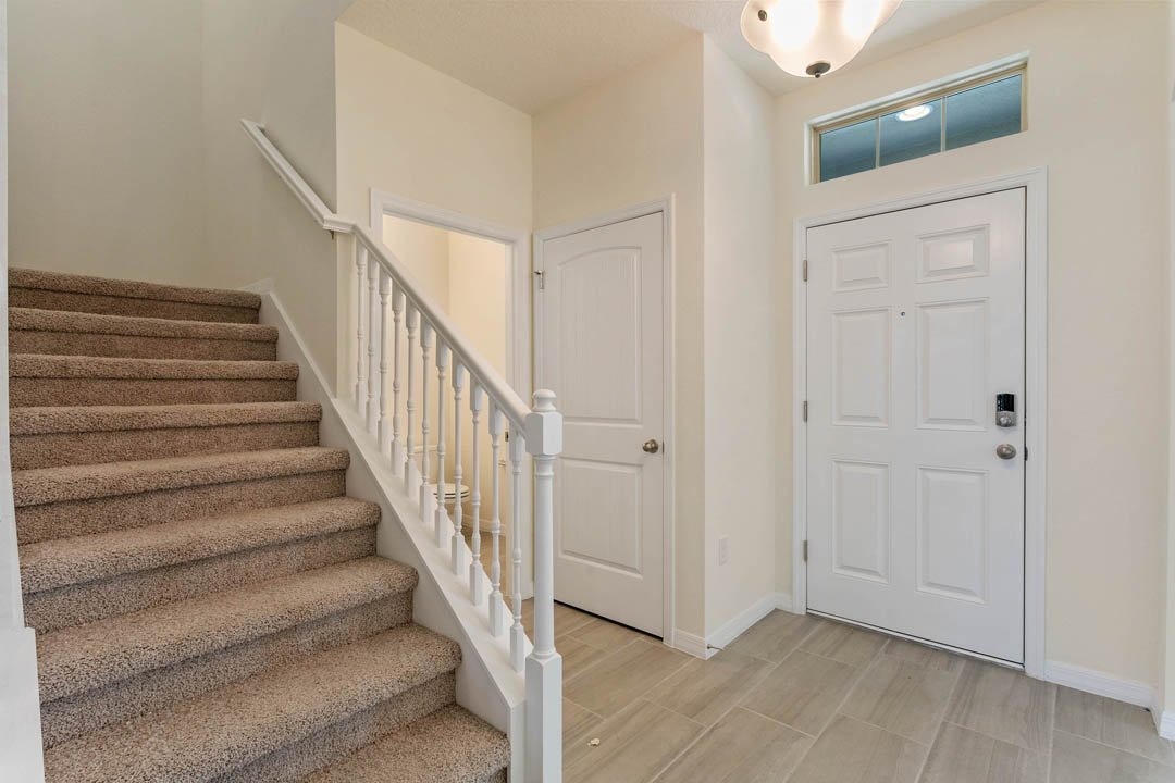 Waterleigh presents the Bellake, available to build in Winter Garden, Florida. This amazing all concrete block construction single-family home features 3 bedrooms and 2.5 bathrooms optimizing living space with an open concept feel. The kitchen overlooks the dining and great room, while having view to the covered lanai outside. Ample windows and a set of sliding glass doors allow lighting into the living area. The well-appointed kitchen features an island with bar seating, plentiful cabinet and counter space and Whirlpool® stainless steel appliances, making entertaining a breeze. The first floor also features a flex room that provides an area for work or play and half bathroom. As we head up to the second floor, we are greeted with Bedroom one which includes a spacious walk-in closet as well as ensuite bathroom with double vanity. Two additional bedrooms share a second upstairs bathroom and linen closet for extra storage. Your laundry room is located on the second floor as well. This home features a two car garage located at the rear of the home complete with drop zone as you enter the home. Like all homes in Waterleigh, the Bellake includes a Home is Connected smart home technology package which allows you to control your home with your smart device while near or away.