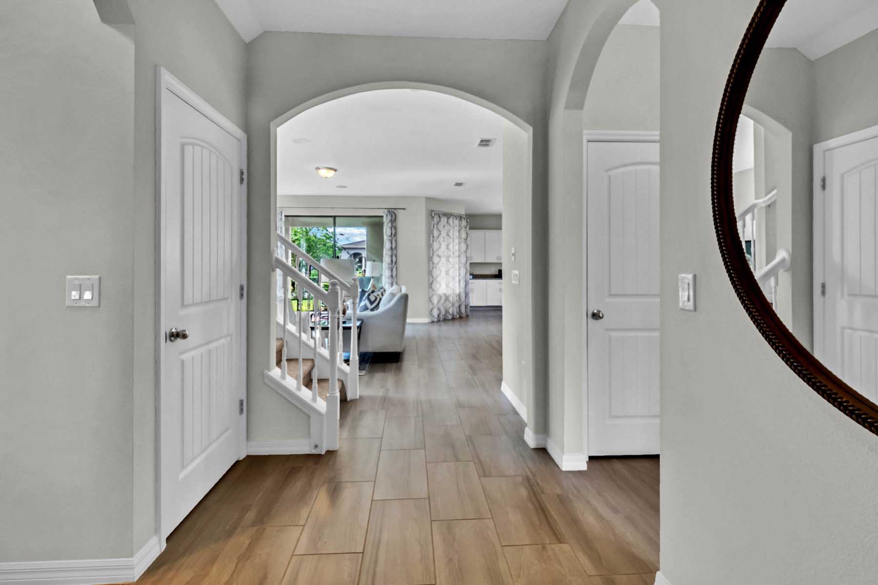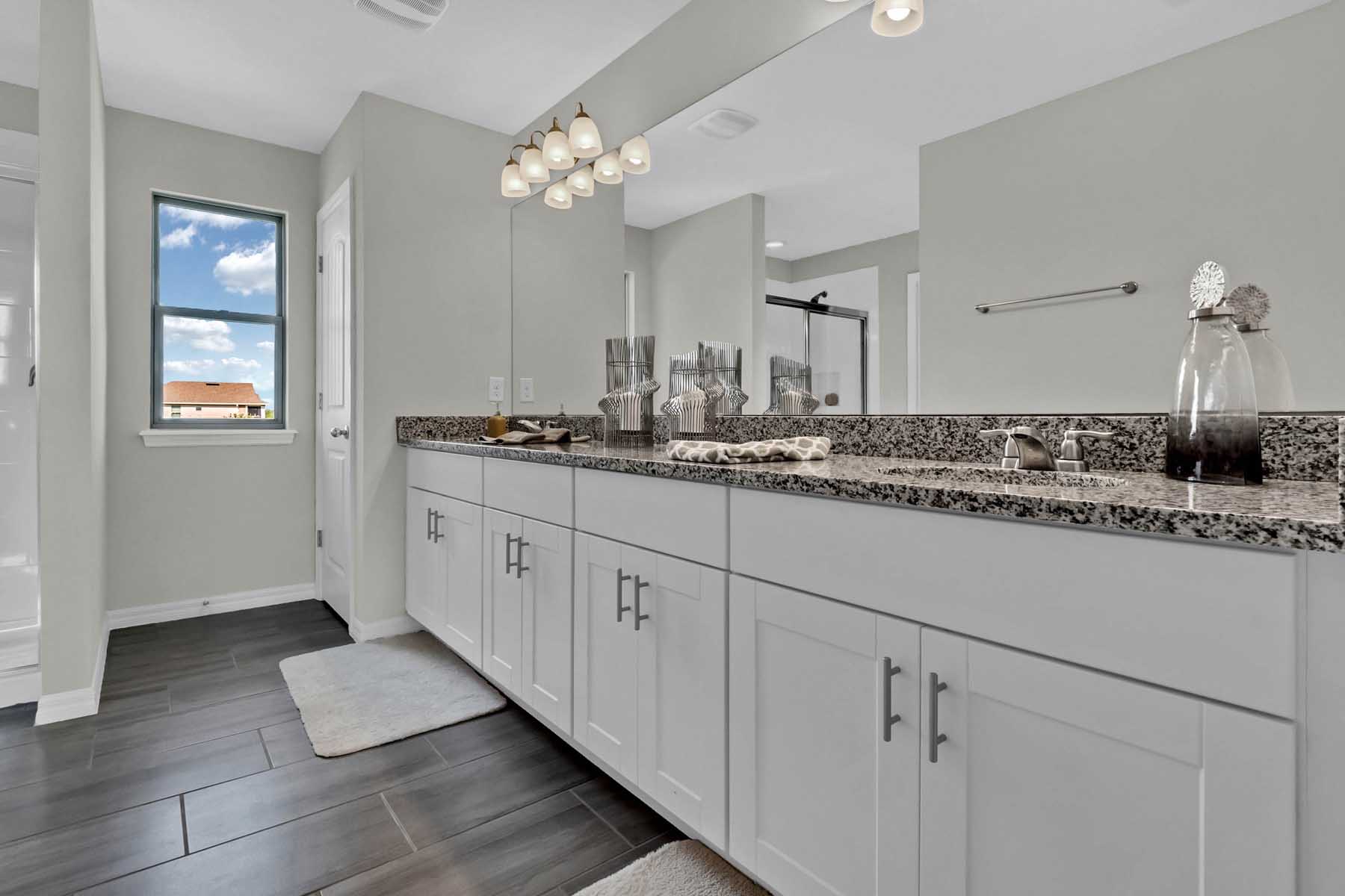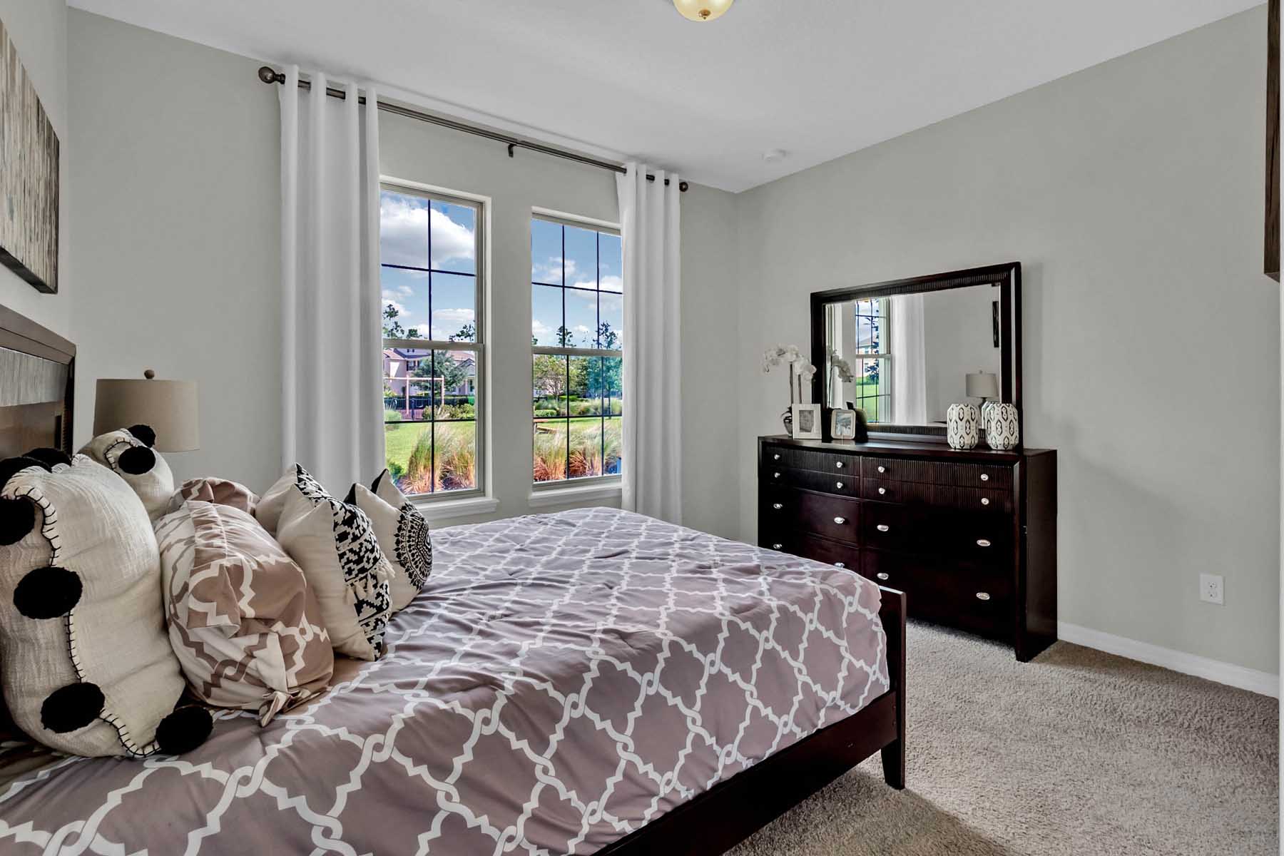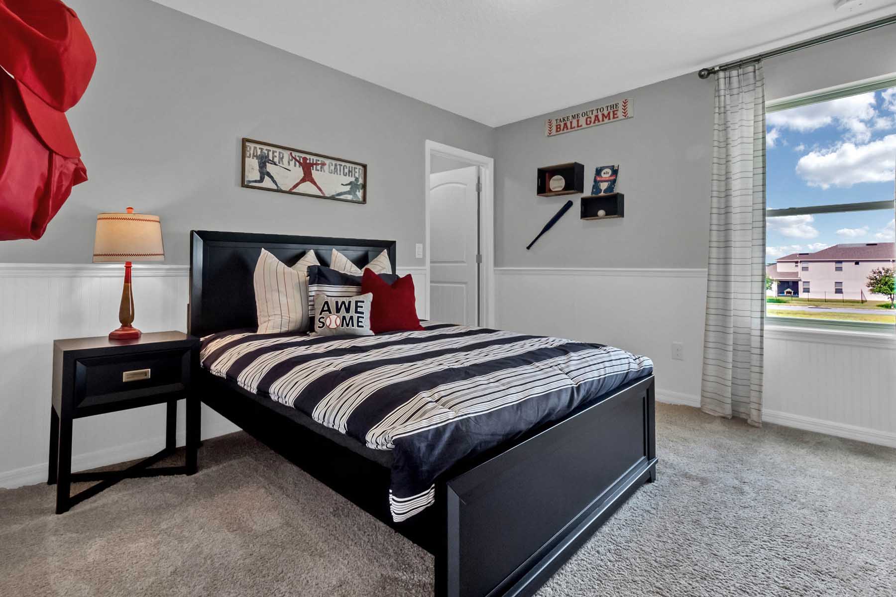 Waterleigh presents the Clearden, available to build in Winter Garden, Florida. This amazing all concrete block construction single-family home features 4 bedrooms and 3.5 bathrooms optimizing living space with an open concept feel. A beautiful porch welcomes you to this home, as you enter the foyer, you’ll find the first bedroom complete with ensuite bathroom and a powder room across the hall. The well-appointed kitchen overlooking the great room, dining room, and oversized outdoor lanai. The kitchen features granite countertops, stainless steel appliances, spacious walk-in pantry and an island with bar seating. As we head up to the second floor, we are greeted with a loft area and additional three bedrooms. Bedroom one is located just off the loft space and includes a spacious walk-in closet as well as ensuite bathroom with double vanity sinks and separate toilet area. Two additional bedrooms share a second upstairs bathroom and linen closet for extra storage. Your laundry room is located on the second floor for convenience. This home features a two car garage located at the rear of the home with drop zone as you enter the first floor. Like all homes in Waterleigh, the Clearden includes a Home is Connected smart home technology package which allows you to control your home with your smart device while near or away.