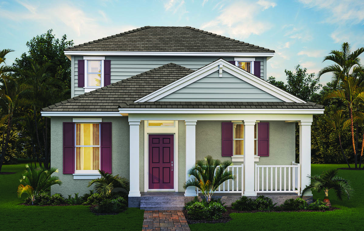 Waterleigh presents the Cordale, available to build in Winter Garden, Florida. This amazing all concrete block construction single-family home features 3 bedrooms and 2.5 bathrooms optimizing living space with an open concept feel. A beautiful porch welcomes you to this home, as you enter the home you’ll find a downstairs powder room and laundry room complete with doors for privacy. The well-appointed kitchen overlooks the family room, dining room, and oversized outdoor lanai. The kitchen features granite countertops, stainless steel Whirlpool® appliances, spacious walk-in pantry and an island with bar seating. Bedroom one is located off the living space in the back of the home for privacy. The bedroom one-bathroom impresses with double bowl vanities, toilet room with privacy door, shower/tub space, and spacious walk in closet. As we head up to the second floor, we are greeted with a loft area and two additional bedrooms. The upstairs bedrooms share a bathroom and linen closet for extra storage. This home features a two-car garage located at the rear of the home with drop zone as you enter the first floor. Like all homes in Waterleigh, the Cordale includes a Home is Connected smart home technology package which allows you to control your home with your smart device while near or away.