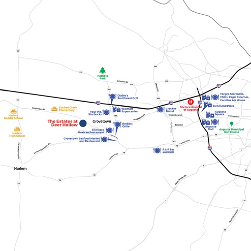 Convenient to I-20 and minutes from Fort Eisenhower Gates 1 and 6, The Estates at Deer Hollow in Grovetown, Georgia has everything on your list - a sought after location, great schools and new homes built for the way you live. With a variety of open concept ranch and two-story plans that offer 3 to 5 bedrooms and range from 1,376 to 3,481 sq ft, you’re sure to find the perfect fit.