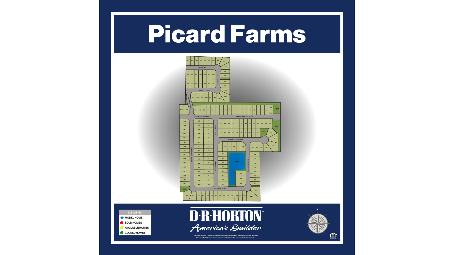 Our stunning exteriors feature brick elevations with low maintenance landscape package and fully sodded yards. Picard Farms homes include energy efficient features throughout to give you peace of mind, D.R. Horton’s unrivaled warranties and each come completed with our Smart Home Technology package that includes smart products integrated throughout your home and designed to bring the convenience of life right to your fingertips.