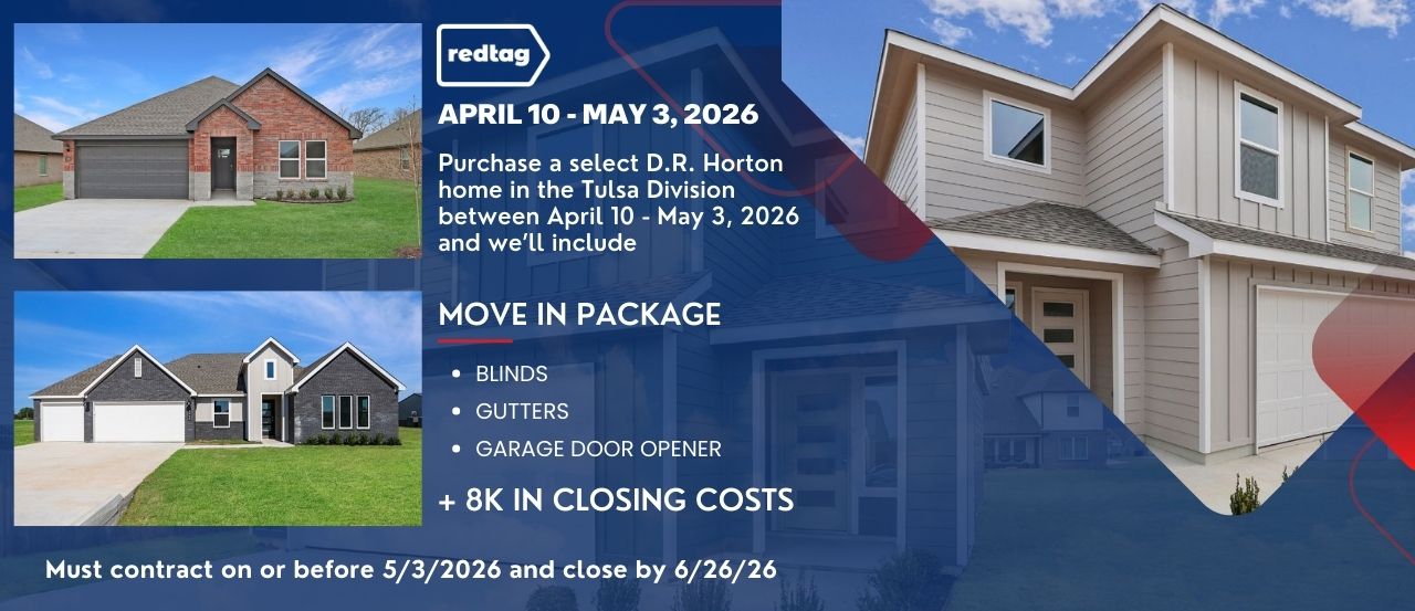 Available on certain D.R. Horton homes in select communities in Oklahoma. Must Contract on or after 03/27/2026 and close by 05/29/2026