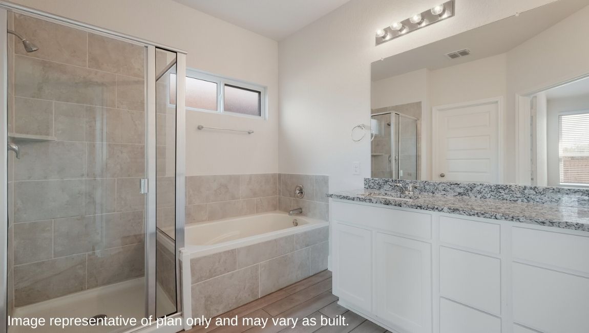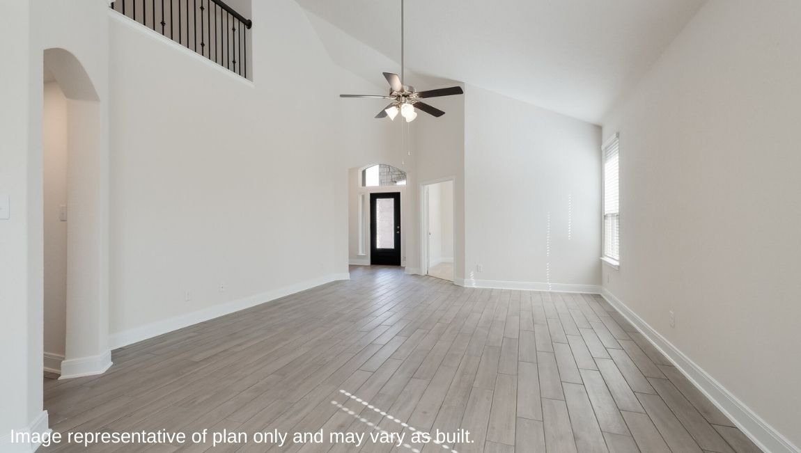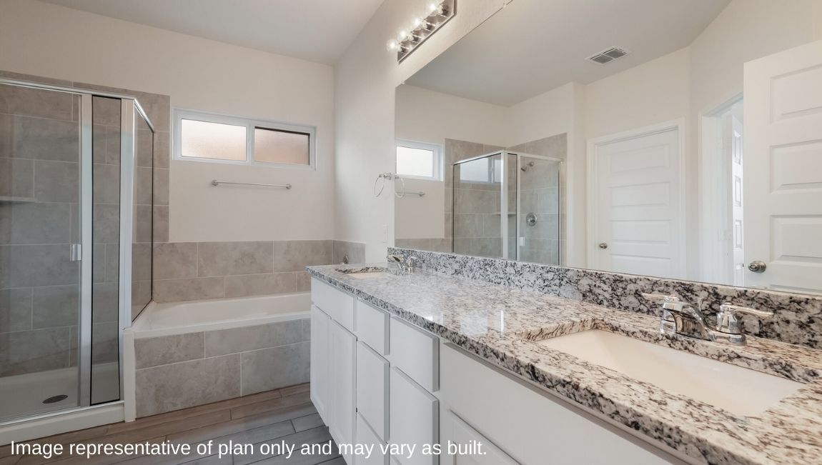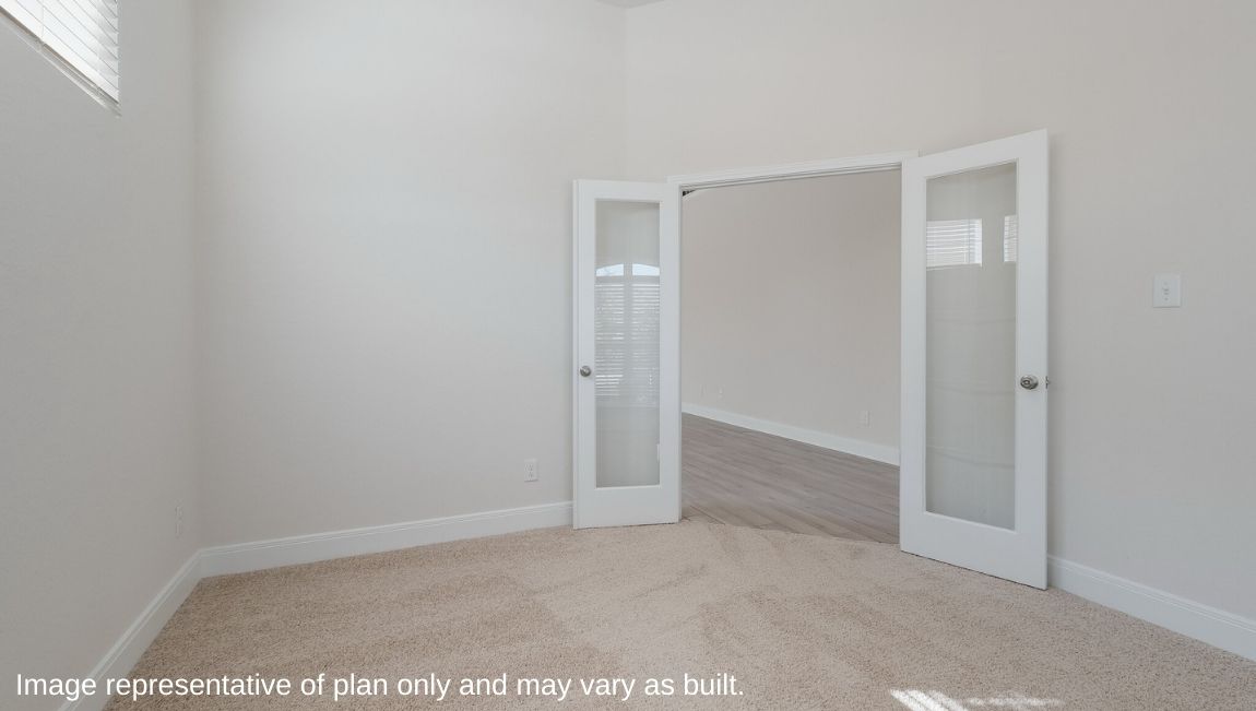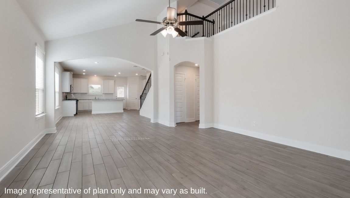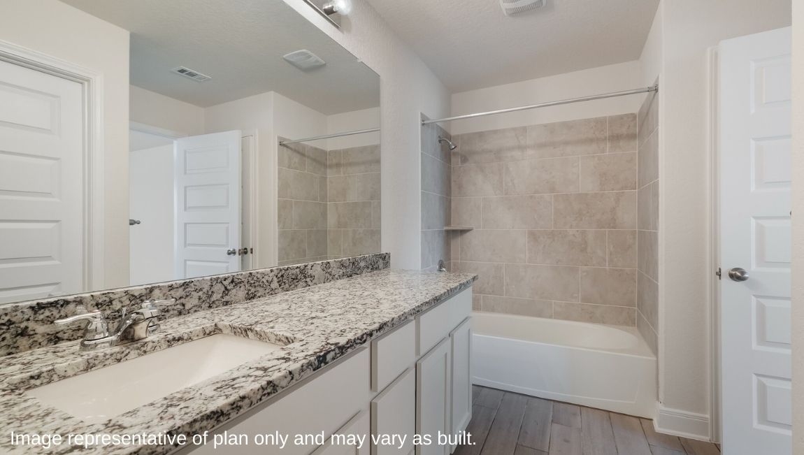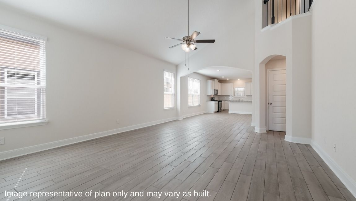 The private main bedroom suite is located off the kitchen and dining area and includes quality carpet flooring, large windows for plenty of natural light and a ceiling fan. Your attached main bathroom features dual vanity sinks, a tiled walk-in shower, shaker style cabinets, and an oversized walk-in closet. Your first story is complete with a dedicated office space, two secondary bedrooms with walk-in closets, a second full bathroom, a powder room and a utility room with tile floors. A versatile loft greets you at the top of the stairs and is a perfect entertainment area. Your guests will love their own bedroom and full bathroom located off the loft. Additional features include tall 9-foot ceilings, 2-inch faux wood blinds throughout the home, pre-plumb for water softener loop, natural gas and more! You’ll enjoy added security in your new home with our Home is Connected features. Using one central hub that talks to all the devices in your home, you can control the lights, thermostat and locks, all from your cellular device. Contact us today by clicking the text with us button or the request information button and receive more information about The Hondo floor plan at Riverstone at Westpointe.