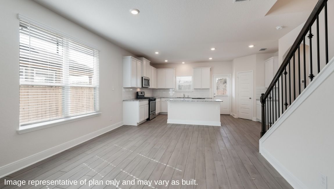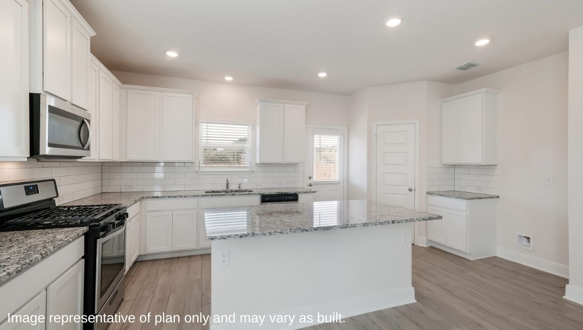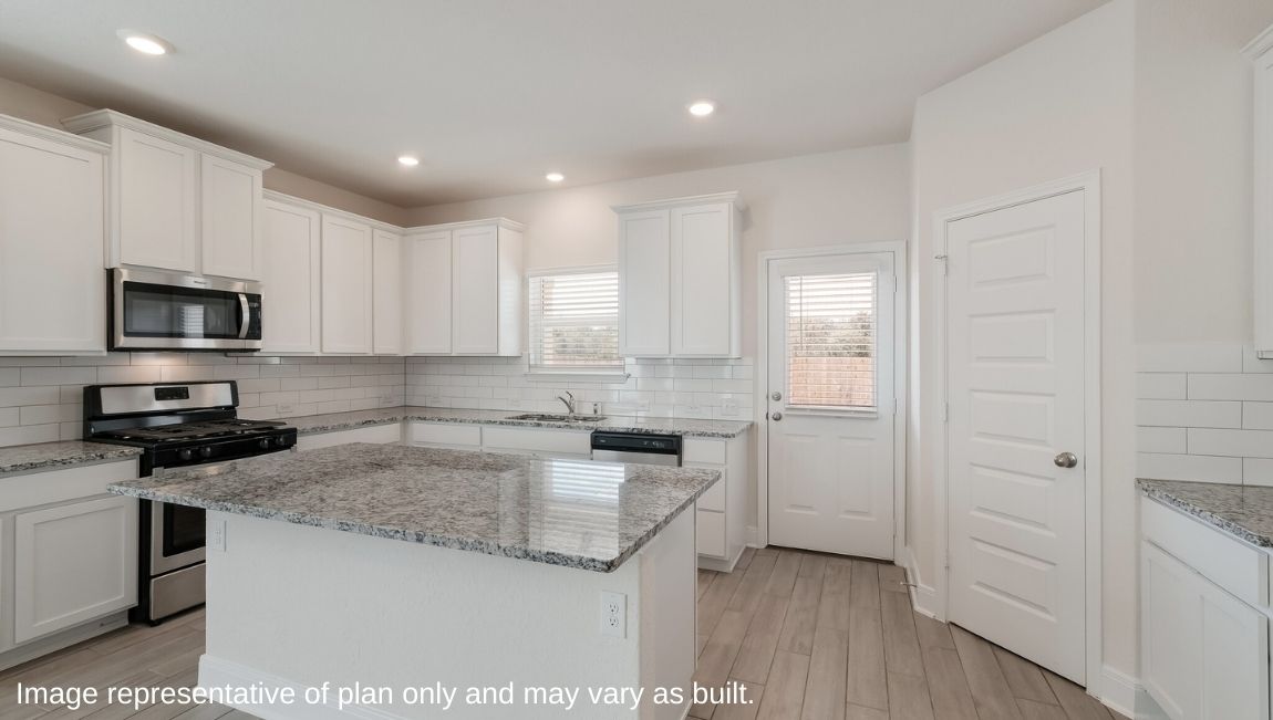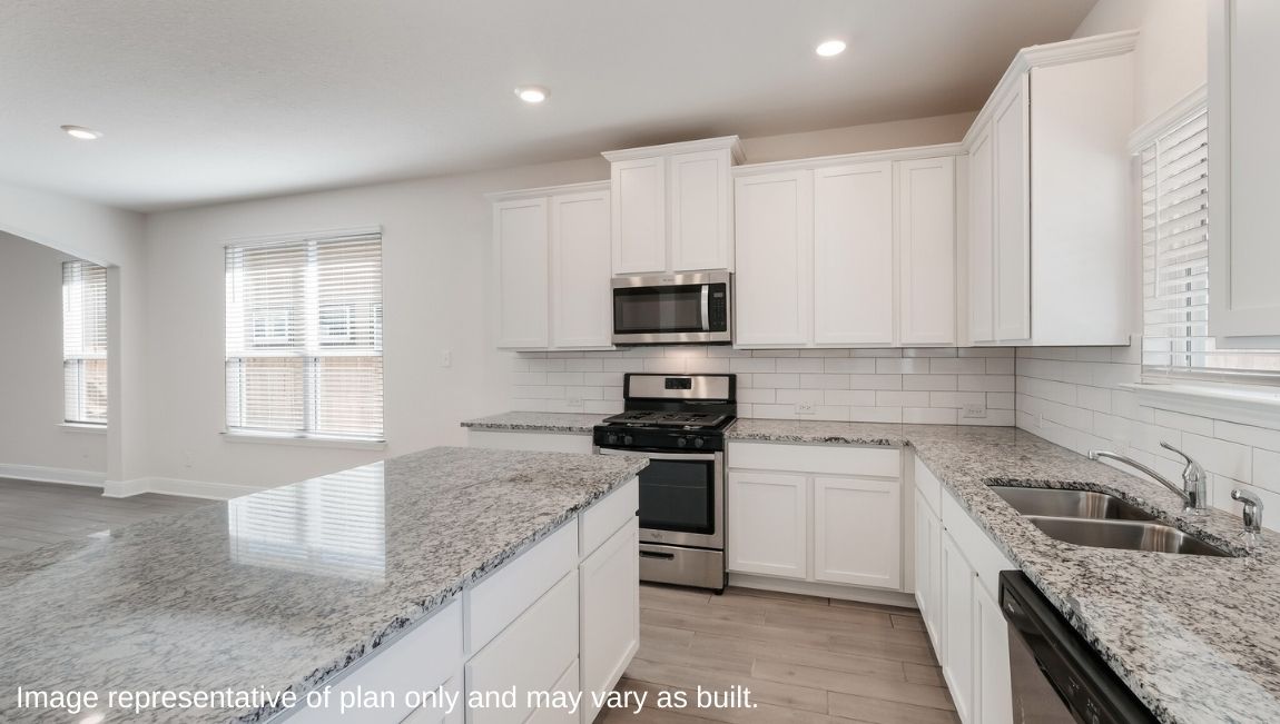 The Hondo is a two-story home featured at Riverstone at Westpointe in San Antonio, TX. Offering two classic front exterior designs, a spacious 2-car garage and a full yard landscaping and irrigation package, the Hondo is designed to be the perfect fit for you! Step inside this 4 bedroom, 3 bathroom home to find 2702 square feet of open-concept living. Whether you're cooking, enjoying a meal or entertaining, you'll never be far from the action with a beautifully blended living room, dining area and kitchen. Your gourmet kitchen is located at the back of the home with a deep single basin sink overlooking your spacious backyard. Addtional kitchen features include gorgeous granite countertops, a spacious kitchen island with plenty of working space and shaker style cabinets, stainless steel appliances, a natural gas cooking range and a spacious corner pantry.