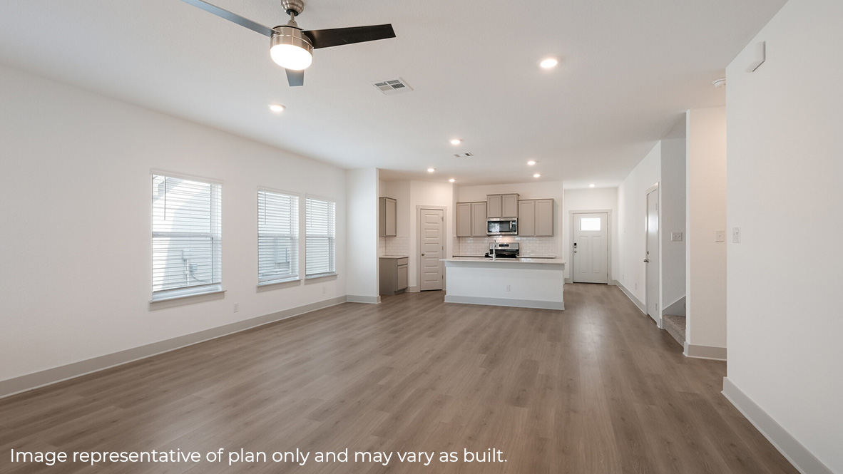 Introducing The Quincy, a two-story home featuring 4 bedrooms, 3 bathrooms, a dedicated study space and a 2-car garage in Riverstone at Westpointe, a new home community located in San Antonio, TX. Here you will find a beautiful open-concept layout with 2698 square feet of funtional living space. Your kitchen, dining area and living room blend together seamlessly with plenty of room for everyday living as well as plenty of natural light from large windows throughout. Your chef's kitchen offers spacious granite countertops, classic subway tile backsplash, stainless steel appliances and a natural gas cooking range. A large kitchen island with a deep single basin sink overlooks the dining area and living room.