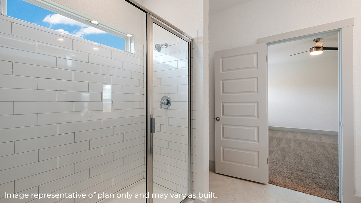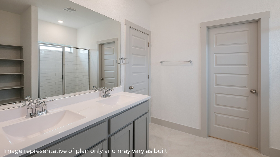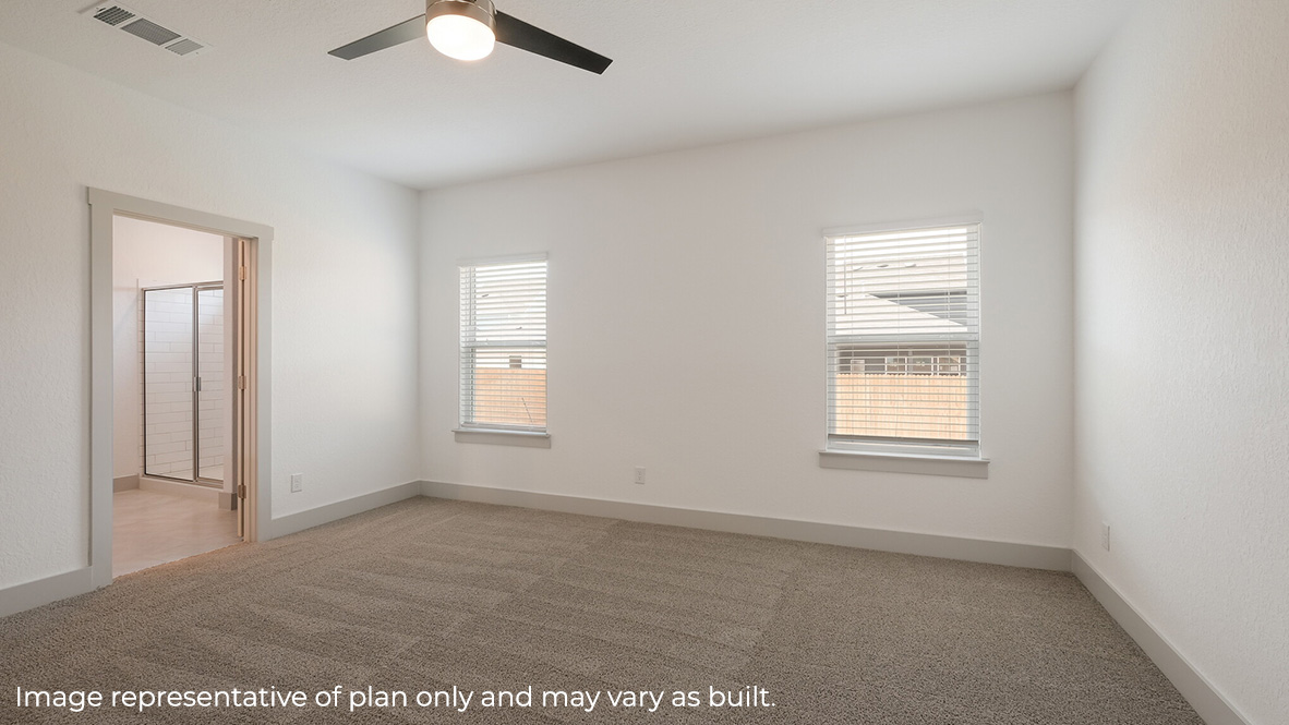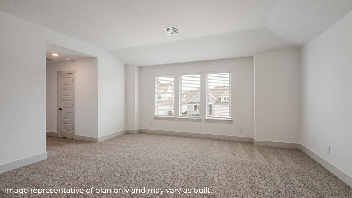 Just off the living room is the private main bedroom and ensuite bathroom which offers a spacious walk in closet, dual vanity sinks, and a spacious tiled walk-in shower. Enjoy large windows, quality carpet flooring and a ceiling fan in your main bedroom. Upstairs you will find a versatile game room or loft, a third full bathroom and two guest rooms. Whether these rooms become bedrooms or other bonus spaces, there is sure to be comfort and functionality. Additional features of The Quincy floor plan include natural gas, hard surface flooring at entry, downstairs, halls, living room, kitchen, and dining/breakfast area, tile in all bathrooms and utility room, pre-plumb for water softener loop, faux wood window blinds, and a professionally landscaped and irrigated yard. This home also includes our HOME IS CONNECTED base package. Using one central hub that talks to all the devices in your home, you can control the lights, thermostat and locks, all from your cellular device. Contact us today and find your home at Riverstone at Westpointe by clicking the text with us button or the request information button.