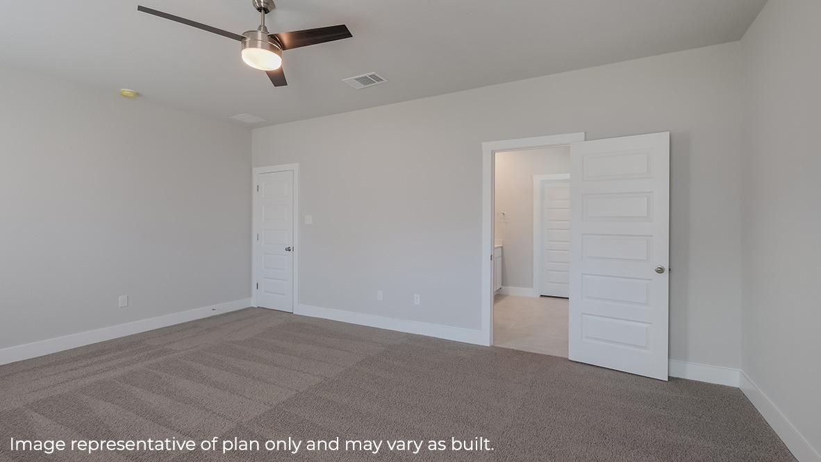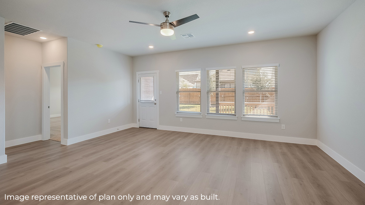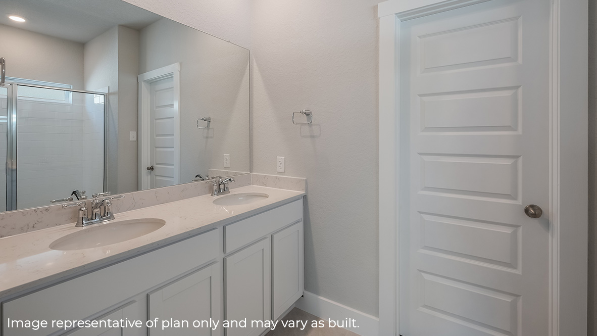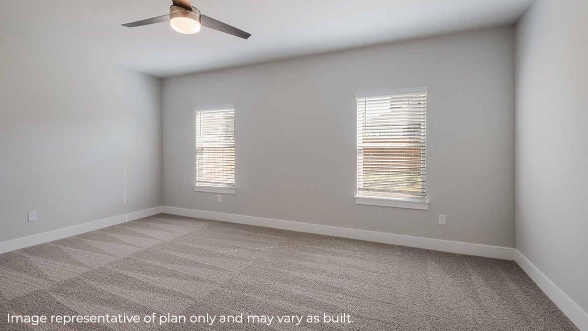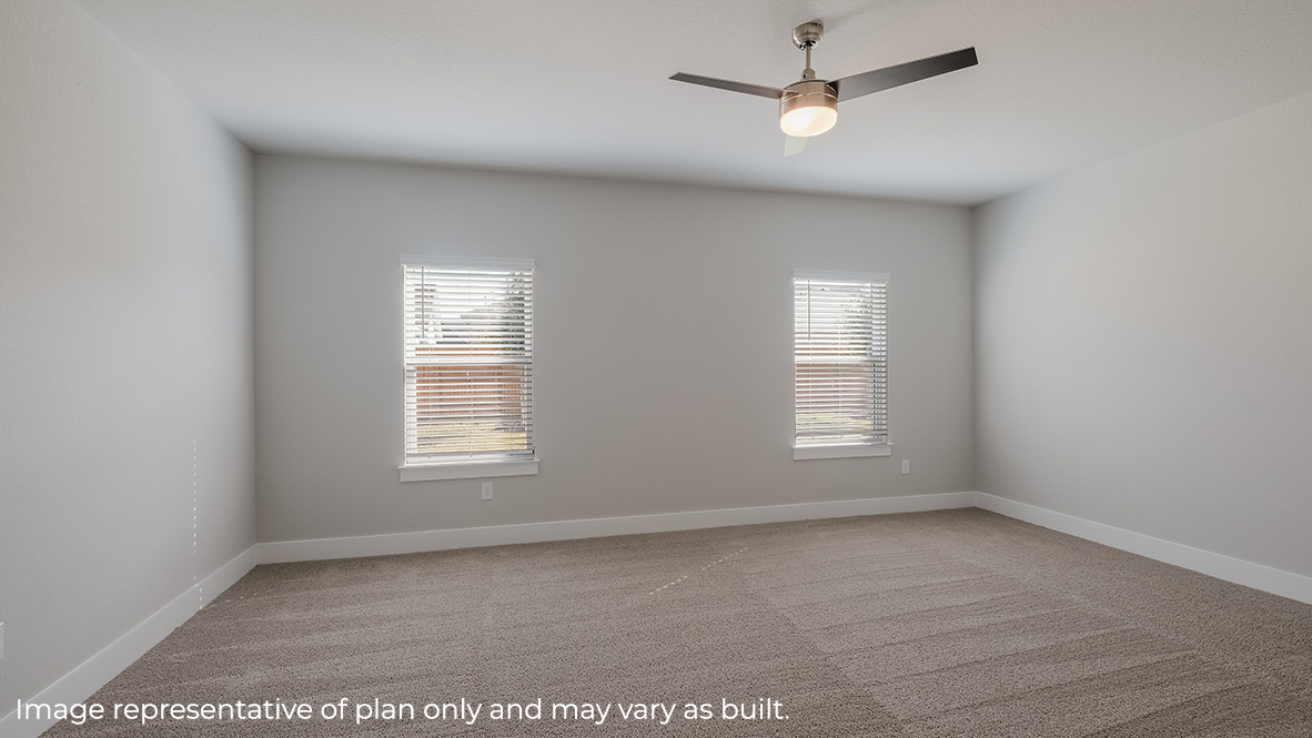 The main bedroom suite is privately located at the back of the home and includes quality carpet flooring, large windows providing plenty of natural light and a stylish ceiling fan. Step through the doorway into your very own attractive ensuite bathroom oasis, complete with a spacious tiled walk-in shower, dual vanity sinks and a walk-in closet. Upstairs you will find a large game room space, a third full bathroom and three secondary bedrooms. All bedrooms have carpet flooring, large windows and closets. Whether these rooms become bedrooms, offices or work out rooms, functionality is key. The Rosemont also includes a covered patio (per plan) and a professionally landscaped and irrigated yard complete with Bermuda sod. Additional features include natural gas, hard surface flooring at the entry, downstairs, halls, living room, kitchen, and dining/breakfast area, tile in all bathrooms and utility room, pre-plumb for water softener loop, and faux wood window blinds. The Rosemont includes our HOME IS CONNECTED base package. Using one central hub that talks to all the devices in your home, you can control the lights, thermostat and locks, all from your cellular device. Contact us today by clicking the text with us button or the request information button and receive more information about The Rosemont floor plan at Riverstone at Westpointe.