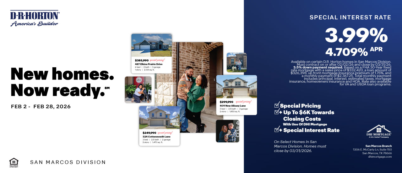 Introducing Navarro Fields, a new home community located in Seguin, Texas. Offering 9 farmhouse style single-story floorplans with 2 to 4 bedrooms, up to 3 bathrooms, and 2 car garages.